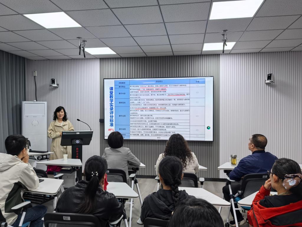 学院党委书记王婷婷作总结发言,王书记高度评价了两位专家的报告。王书记强调,课程思政建设已进入内涵式高质量发展新阶段,如何推动理想信念教育常态化制度化,增强课程思政的吸引力感染力,需要结合时代特点、学生需求进行持续创新。教师要自觉弘扬教育家精神,将课程思政植根于我国国情,以学生为中心,推动课程与思政的深度融合,不断提升课程的吸引力与感染力。王书记希望我院全体教师以此次培训为契机,深化教学改革,创新教学模式,为培养德智体美劳全面发展的时代新人贡献力量。