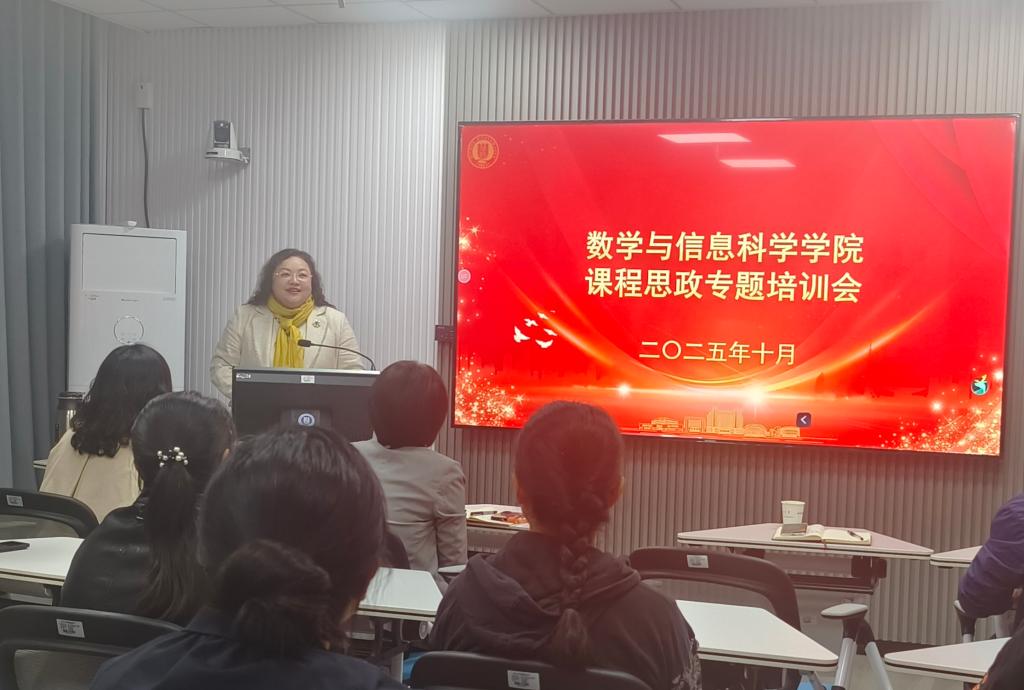为进一步推动课程思政建设与教学改革创新,提升教师教学竞赛水平与育人实效,2025年10月9日下午,数学与信息科学学院在文苑楼108室智能学术活动中心举办了课程思政专题报告会。报告会邀请河北农业大学理学院教授田苗、河北大学基础医学院教授刘莉两位教授担任主讲嘉宾。学院党委书记王婷婷、院长高红亚出席了会议,学院青年教师、智慧课程申报教师、课程思政与教学创新大赛备赛教师、省级及以上课程负责人及团队成员等20余人参加了会议,副院长谢博鋆主持报告会。